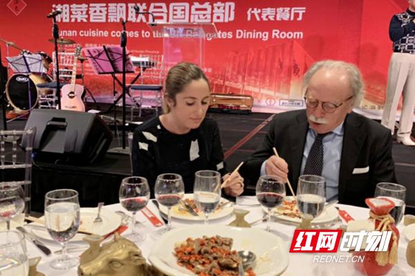 王一博拿起筷子尝了一口,说:“特别嫩,这道菜是作为湘菜代表走进联合国的。”